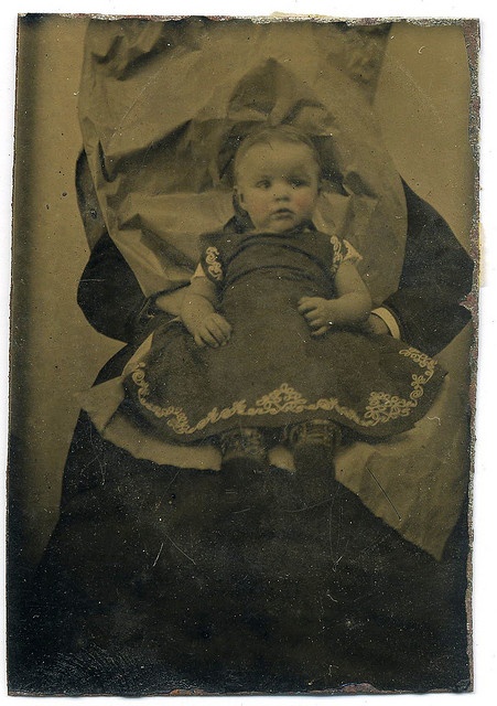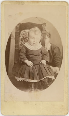 Photography became broadly affordable during this time (mid 1800's to early 1900's) and, of course, the general population wanted to record images of their families. The challenge was photographing small babies and children, as the process of recording an image onto a "wet collodion" (an early photographic technique or process which involved adding a soluble iodide to a solution of cellulose nitrate, which coated a glass plate with the mixture, and stored the image), took about 30 seconds, which probably felt like an eternity to a squirming child. It was ultimately up to "Mum" to hold the child still during this process.